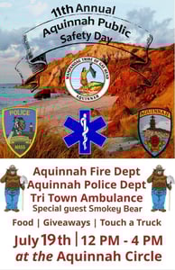 The 11th Annual Aquinnah Public Safety Day will take place tomorrow, Saturday, July 19, from 12 to 4 p.m. The Massachusetts State Police Helicopter is scheduled to land at Aquinnah Circle at approximately 11:30 a.m.